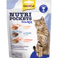 GimCat Nutri Pockets Sea Mix zijn knapperige kussentjes met een heerlijke vulling. De zalm-, forel- en garnalenversie is bijzonder lekker en bevat ook taurine. Dit is belangrijk voor het behoud van het gezichtsvermogen en de normale hartfunctie.Specificaties
