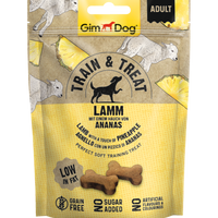 De GimDog TRAIN & TREAT Snacks zijn perfect om uw hond te belonen en hem te vertellen: Goed zo, Braaf! De waardevolle eiwitbron lam met ananas - een combinatie die u zeker nog nooit eerder hebt gezien en een smaak die uw hond niet zal afslaan. Het recept is graanvrij, zonder toegevoegde suiker, kunstmatige kleur- en smaakstoffen. Bovendien hebben ze een laag vetgehalte - zodat u uw hond zonder een slecht geweten nog een paar traktaties kunt geven.Specificaties