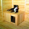 Dit hondenhok is perfect voor honden die in een kennel worden gehouden. Het is gemaakt van duurzaam hout en heeft een stevige constructie. Het dak is bedekt met bitumen, wat het hok beschermt tegen regen en wind. De deur van het hondenhok kan worden afgesloten met een slot, zodat uw hond veilig en warm kan blijven.