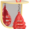 Trekken, duwen en schudden en het belletje in de boksbal zal gaan rinkelen! Uw vogel zal het daarnaast geweldig vinden om het balletje in actie te zien in de glimmende spiegel. Op de bovenkant van het speeltje zit een rood hengsel waarmee de boksbal tevens in beweging kan worden gebracht. Twee manieren om te spelen dus!