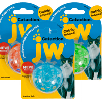 De JW Cat Toy Lattice Ball is niet alleen een uitstekend gevormde bal, hij is ook nog eens doordrenkt met de hemelse geur van Catnip.
