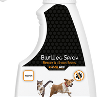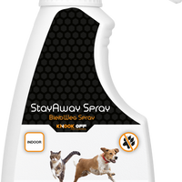 Spray Knock Off Stay Away op de te beschermen plek. Test altijd voor gebruik op een onopvallende plaats op de kleurvastheid van het materiaal. Breng gedurende ca. 7-10 dagen dagelijks Knock Off Stay Away aan. Niet over het voer sprayen!
