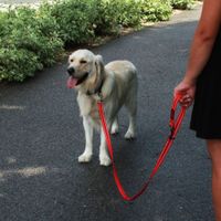 Verstelbare riemDeze nylon riem is eenvoudig aan te passen aan vijf verschillende lengtes, zodat u en uw hond zich kunnen aanpassen aan verschillende wandelomgevingen.