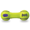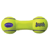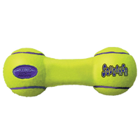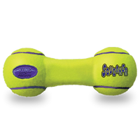 KONG Air Squeaker DumbbellEen combinatie van 2 hondenspeeltjes in 1! Tennisbal en het piepspeeltje. Door de herkenbare botvorm is dit speeltje perfect als apporteerspeeltje. Deze duurzame en kwalitatief hoogwaardige AirDog Dumbbell kan geen schade aan het hondengebit veroorzaken. Het is gemaakt van speciaal, niet-schurend vilt. In tegenstelling tot het schurende materiaal van gewone tennisballen.