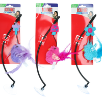 Eenvoudig te bevestigen op glad oppervlak zoals bijvoorbeeld een raam of glazen deur. Zo kan uw kat zich vermaken, ook als u er niet bent. Voorzien van vrolijke kleuren, veertjes en zachte materialen.