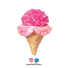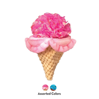 Het bolletje ijs zit met een elastiekje vast aan het hoorntje