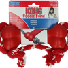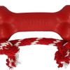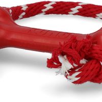 Sterk duurzaam speelgoedbot dat een flosstouw bevat voor nog meer speelplezier. Niet alleen helpt het touw het gebit te reinigen, het voldoet ook aan de kauwbehoefte van de hond, die kan kiezen voor het touw of voor het rubber.