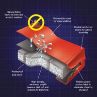 De hoezen zijn eenvoudig af te nemen, dus makkelijk te wassen en te drogen. De rits is verstopt aan de onderkant, waardoor uw hond er praktisch niet op kan kauwen. Door het zogenaamde 3-kamer systeem blijven de kussens stevig en voorkomt het opeenhoping van de vulling.