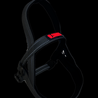 Het eenvoudige ontwerp, de verstelbare borstriem en de enkele gesp maken het tuigje makkelijk aan en uit te trekken. Voorzien van een gewatteerde lus voor extra controle en snelle handeling; drie D-ringen bieden een veelzijdigheid voor het bevestigen van de riem. Twee strepen met reflecterende strips zorgen voor een goede zichtbaarheid.