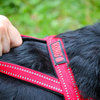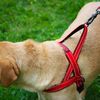 Het eenvoudige ontwerp, de verstelbare borstriem en de enkele gesp maken het tuigje makkelijk aan en uit te trekken. Voorzien van een gewatteerde lus voor extra controle en snelle handeling; drie D-ringen bieden een veelzijdigheid voor het bevestigen van de riem. Twee strepen met reflecterende strips zorgen voor een goede zichtbaarheid.