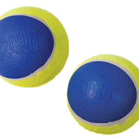 Het unieke niet-schurende materiaal van de tennisbal is zacht voor tanden en tandvlees