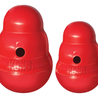 De Wobbler is een KONG-gevormd speeltje dat voedsel afgeeft en een voerbak die rechtop staat totdat het door de poot of de neus van een hond wordt omgeduwd en voedsel afgeeft terwijl het wiebelt, draait en rolt. Door de onvoorspelbare bewegingen blijft het speeltje een uitdaging, zelfs voor de ervaren Wobbler-gebruikers. Gebruik de Wobbler als een alternatief voor de hondenbak en om te helpen voertijd uit te breiden en je hond te laten bewegen.