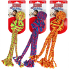 Uniek design flosstouw waar honden dol op zijn en blijven. Het speelgoed is makkelijk weg te gooien dankzij de lange slierten. De robuust geweven katoenen touwen reinigen het gebit en de pieper in de bal zorgt voor extra speelplezier.