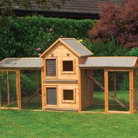 Dit konijnenhok "Fluffy" is perfect voor jouw konijnen. Het hok is voorzien van een uitbreiding en dubbel buitenverblijf en biedt voldoende ruimte voor jouw konijnen om te spelen, rusten en eten. Het hok heeft een afmeting van 277 x 101 x 140 cm.