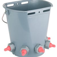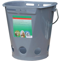 Grijze emmer tweezijdig plat met 5 grote gaten om daarin korte spenen te bevestigen