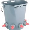 Grijze emmer tweezijdig plat met 5 grote gaten om daarin korte spenen te bevestigen.