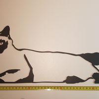 Prachtige 'huis' kat op ware grote. De kat is gemaakt van 3 mm dik cortenstaal en mat afgelakt. Er worden 2 subtiele houders meegeleverd waardoor de kat zeer comfortabel en stevig kan liggen op tafels, vensterbanken etc. Ook is hij eenvoudig op te hangen aan muren en schuttingen. Een ware eyecatcher in huis!