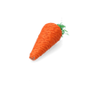 Spelen en knagenVrolijk gekleurde wortel met loof om mee te spelen en lekker aan te knagen.