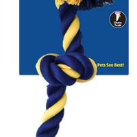 Pet Sport Touwen zijn oersterke- gevlochten touwen die gemaakt zijn van zorgvuldig geselecteerd katoen (1ste klasse-kwaliteit). Er zijn veel verschillende flostouwen op de markt, veelal gemaakt van afvalkatoen, deze zijn daarom niet te vergelijken met onze unieke flostouwenlijn van Pet Sport USA. Daarnaast zijn de Pet Sport USA flostouwen gemaakt uit de kleurcombinatie van blauw en geel, onderzoek wijst uit dat deze kleuren te zien zijn voor honden waardoor dit touw de voorkeur krijgt bij honden boven alle andere touwen!
