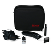 De Tondeuse wordt geleverd in een handige etui met oplaadsnoer, borsteltje, extra opzetstukje en onderhoudsolie.