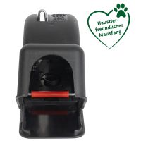 De Maus-Weg-Falle is een veiligere muizenval met een beschermend kunststofhuis dat toegang tot de slagarm belemmert. Gebruik smeerbare lokaas en plaats de val langs een muur. De spanhendel geeft aan of de val is geactiveerd en muizen kunnen zonder aanraking worden verwijderd.Specificaties