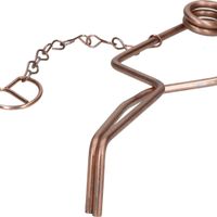 Koperen draadklem voor het vangen van woel- en veldmuizen. Zeer eenvoudig in gebruik. De klemring zit vast aan een ketting en kan zo niet zoekraken in de grond.