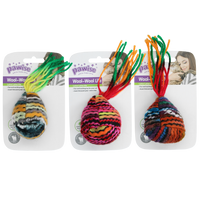 Wollige knuffeltjesDeze gebreide kattenspeeltjes hebben elk hun eigen unieke eigenschap.