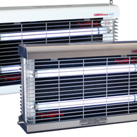 Plafondmodel vliegenlamp met 360° aantrekkingskracht en uitgerust met twee lijmplaten. Ideaal voor montage in een industriële omgeving waar met levensmiddelen wordt gewerkt. Voorzien van 4 x 15 Watt Quantum Shatterproof UV-A lampen voor optimale aantrekking. De standaard achter de UV-A lamp gemonteerde Reflectorbak zorgt ervoor dat de lampen dichter tegen de lijmplaat kunnen worden geplaatst en beschermt de lijmplaat tevens tegen uitdrogen. Vervangen van de lijmplaten of lampen is eenvoudig uit te voeren zonder gereedschap.