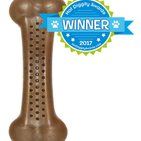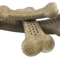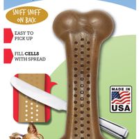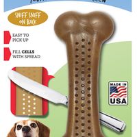 De volgende generatie Favorit! Het rijkelijk met smaak gevulde nylon bot heeft kleine gaatjes in beide kanten voor lekkernijen. Ze kunnen gevuld worden met pindakaas, smeerkaas, roomkaas of andere smeerbare lekkernijen. De kleine gaatjes kunnen net genoeg smeerbare lekkernijen vast houden om er voor te zorgen dat uw hond zich vermaakt maar niet te veel calorieën binnen krijgt. Het succes van andere merken nylon botten richten zich op het kauwen van de hond. Onze botten stimuleren gezond kauwen en zorgen voor een vermakelijkere ervaring. Ze helpen bij het voldoen aan de behoefte van uw hond om te eten. U kunt zelfs verschillende smaken aan beide kanten smeren om de smaken te versterken!