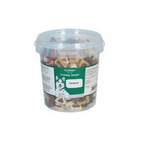 Pet Rewards Candy mixEen feest voor iedere hond, deze mooi mix van trainer-snacks gemaakt van vlees, een semi-moist soft beloning. Dit houdt in dat deze snacks nog licht vochtig zijn en daardoor extreem krachtig zijn in smaak en geur. Daarom zijn dit ook de ideale snacks voor hondentrainers en baasjes om hun honden en pups te belonen bij goed gedrag tijdens een training of cursus. Deze trainer-snack bevat geen toegevoegde suikers en het mooiste van alles is dat deze snoepjes van Pet Rewards gemaakt zijn in Nederland! Verpakt in een handige hersluitbare emmer.