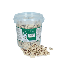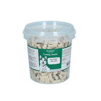 Pet Rewards Duo Trainer met lamDeze trainer-snack is gevuld met heerlijk lamsvlees en is een semi-moist soft beloning. Dit houdt in dat deze snacks nog licht vochtig zijn en daardoor extreem krachtig zijn in smaak en geur. Daarom zijn dit ook de ideale snacks voor hondentrainers en baasjes om hun honden en pups te belonen bij goed gedrag tijdens een training of cursus. Deze trainer-snack bevat geen toegevoegde suikers en het mooiste van alles is dat deze snoepjes van Pet Rewards gemaakt zijn in Nederland! Verpakt in een handig hersluitbare emmertje.