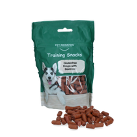 Pet Rewards Glutenfree Drops rode bietDeze glutenvrije trainer-snack is gevuld met vlees en rode biet en is een semi-moist soft beloning. Dit houdt in dat deze snacks nog licht vochtig zijn en daardoor extreem krachtig zijn in smaak en geur. Daarom zijn dit ook de ideale snacks voor hondentrainers en baasjes om hun honden en pups te belonen bij goed gedrag tijdens een training of cursus. Deze trainer-snack bevat geen toegevoegde suikers, is glutenvrij en het mooiste van alles is dat deze snoepjes van Pet Rewards gemaakt zijn in Nederland! Verpakt in een handige hersluitbare zak waardor de snacks makkelijker en langer vers blijven.