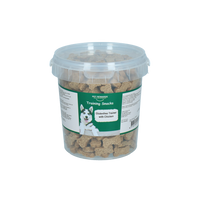 Pet Rewards Glutenfree Trainer met kipDeze glutenvrije trainer-snack is gevuld met kip en is een semi-moist soft beloning. Dit houdt in dat deze snacks nog licht vochtig zijn en daardoor extreem krachtig zijn in smaak en geur. Daarom zijn dit ook de ideale snacks voor hondentrainers en baasjes om hun honden en pups te belonen bij goed gedrag tijdens een training of cursus. Deze trainer-snack bevat geen toegevoegde suikers, is glutenvrij en het mooiste van alles is dat deze snoepjes van Pet Rewards gemaakt zijn in Nederland! Verpakt in een handige hersluitbare zak waardor de snacks makkelijker en langer vers blijven.