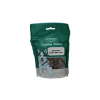 Pet Rewards Glutenfree Trainer met lamDeze glutenvrije trainer-snack is gevuld met lam is een semi-moist soft beloning. Dit houdt in dat deze snacks nog licht vochtig zijn en daardoor extreem krachtig zijn in smaak en geur. Daarom zijn dit ook de ideale snacks voor hondentrainers en baasjes om hun honden en pups te belonen bij goed gedrag tijdens een training of cursus. Deze trainer-snack bevat geen toegevoegde suikers, is glutenvrij en het mooiste van alles is dat deze snoepjes van Pet Rewards gemaakt zijn in Nederland! Verpakt in een handige hersluitbare zak waardor de snacks makkelijker en langer vers blijven.