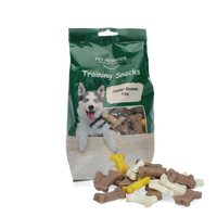 Pet Rewards Junior bonesDeze koekjes zijn simpelweg de onweerstaanbare snack voor iedere hond. De koekjes worden met zorg gebakken in een oven en na het afkoelen en uitharden snel verpakt waardoor ze heerlijk vers en krokant zijn. Junior Bones staat voor het formaat, deze koekjes zijn namelijk maar 4 cm groot, waardoor ze de perfecte beloning zijn voor tijdens een training. Het mooiste van alles is dat deze snoepjes van Pet Rewards gemaakt zijn in Nederland!