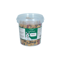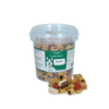 Pet Rewards Mega mixEen feest voor iedere hond, deze mooi mix van trainer-snacks gemaakt van vlees, een semi-moist soft beloning. Dit houdt in dat deze snacks nog licht vochtig zijn en daardoor extreem krachtig zijn in smaak en geur. Daarom zijn dit ook de ideale snacks voor hondentrainers en baasjes om hun honden en pups te belonen bij goed gedrag tijdens een training of cursus. Deze trainer-snack bevat geen toegevoegde suikers en het mooiste van alles is dat deze snoepjes van Pet Rewards gemaakt zijn in Nederland! Verpakt in een handige hersluitbare emmer.