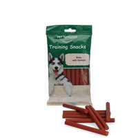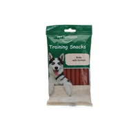 Pet Rewards Rolls met zalmDeze stick is gevuld met heerlijke zalm en is een semi-moist soft beloning. Dit houdt in dat deze snacks nog licht vochtig zijn en daardoor extreem krachtig zijn in smaak en geur. Deze stick is een heerlijke traktatie voor uw hond en kan ook prima in kleine stukjes gebroken worden om te gebruiken als snack tijdens trainingen om goed gedrag te stimuleren. Het mooiste van alles is dat deze snoepjes van Pet Rewards gemaakt zijn in Nederland!