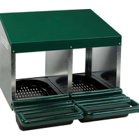 Stevig, gegalvaniseerd dubbel legnest met comfortabele plastic vloer.Inclusief een voor pluimvee onbereikbare opvangbak met deksel ter bescherming van de eieren.