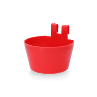Kunststof voerbakje voor pluimveeVeelzijdig inzetbaar drink- of voerbakje met 2 haken. Kan eenvoudig opgehangen worden aan diverse typen gaas.