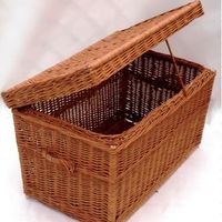 Gevlochten rieten mand met deksel. De mand is uitermate geschikt als was of speelgoed/opbergmand. De mand is in drie verschillende maten leverbaar (lengte 60 cm, lengte 80 cm en lengte 100 cm)
