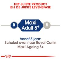 Uw grote hond is gezond, toch? Of kan hij nog vitaler zijn? Maxi Adult 5+ van ROYAL CANIN® is speciaal voor de grotere hond vanaf 5 jaar. De uitgebalanceerde voeding is aangepast aan de voedingsbehoeften van ouder wordende honden.Specificaties