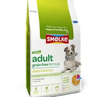 Dit complete premiumvoer van Smølke is geschikt voor volwassen honden van alle rassen. Omdat het graanvrij is, is het ook geschikt voor honden met graan- en glutenallergie. De hoogwaardige rauwe ingrediënten zorgen voor een gezonde en goed verteerbare voeding, met een uitstekende opname van de voedingsstoffen. Het hoge vlees- en eiwitgehalte maakt deze voeding zeer geschikt voor actieve honden. Daarnaast voorkomen mineralen de vorming van tandsteen en zorgen Omega 3 en 6 vetzuren ervoor dat huid en vacht in uitstekende conditie blijven. Dit product is vrij van suikers en kunstmatige geur-, kleur- en smaakstoffen.Samenstelling: