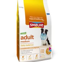 Smolke Adult Medium Brokken 12 kgSmolke Adult Medium is een complete alles-in-één hondenvoeding afgestemd op de behoeften van volwassen honden van gemiddelde grootte vanaf de leeftijd van ongeveer twaalf maanden en met een gewicht tussen 10-30 kg. Het is samengesteld zonder tarwegluten en bevat speciale mineralen om tandplak te helpen voorkomen. Smølke Adult Medium is gemaakt met natuurlijke ingrediënten en heeft een uniek eiwitprofiel bereid met Nederlandse kip, MSC vis en Brits lam. Smølke Adult Medium is een gezonde en uitgebalanceerde voeding die elke dag zorgt voor een blije en tevreden hond. Natuurlijk vrij van kunstmatige kleur- en smaakstoffen en chemische antioxidanten.SamenstellingKippenmeel (19%), maïs, gerst, rijst, sorghum, kippenvet (gestabiliseerd met natuurlijke tocoferolen), lamsmeel (4%), bietenpulp, gehydrolyseerd eiwit, MSC gecertificeerd vismeel (2%)*, vitaminen- en mineralenmix, cellulose (1%), gist, MSC gecertificeerde visolie (0,8%)*, cichorei (0,7%), natriumhexametafosfaat (0,1%). *Van MSC gecertificeerde duurzame visserij.Analytische bestanddelen ruw eiwit 24%, ruwe celstof 3,0%, vet 13%, ruwe as 5,5%, calcium 0,89%, fosfor 0,70%, magnesium 0,12%, omega-3 vetzuren 0,30%, omega-6 vetzuren 2,3%. Toevoegingen per kg: Met natuurlijke antioxidanten.