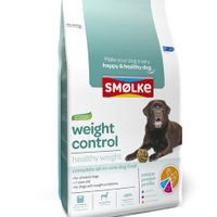 Smolke Weight Control 12 kg Smolke Weight Control is een uitgebalanceerde alles-in-één hondenvoeding met natuurlijke ingrediënten voor honden met overgewicht of obesitas. Het is geformuleerd zonder tarwegluten en bevat 20% minder vet dan reguliere Smølke hondenbrokken voor volwassen honden. Smølke Weight Control is gemaakt met natuurlijke ingrediënten en heeft een uniek eiwitprofiel bereid met Nederlandse kip, MSC vis en Brits lam. Smølke Weight Control is een gezonde en uitgebalanceerde voeding die uw hond zal helpen een gezond gewicht te bereiken of te behouden. Uiteraard zonder kunstmatige kleur- en smaakstoffen en chemische antioxidanten! Samenstelling: Kippenmeel (19%), maïs, gerst, rijst, sorghum, cellulose (5%), lamsmeel (4%), bietenpulp, kippenvet (gestabiliseerd met natuurlijke tocoferolen), gehydrolyseerd eiwit, MSC gecertificeerd vismeel (2%)*, vitaminen- en mineralenmix, gist, MSC gecertificeerde visolie (0,8%)*, cichorei (0,7%), natriumhexametafosfaat. *Van een MSC gecertificeerde duurzame visserij. www.msc.org/nlDe voordelen van Smolke Weight Control: Verlaagd vetgehalte - Bevat ten minste 20% minder vet dan reguliere Smølke droge brokken voor volwassen honden. Stimuleert een verzadigd gevoel - Toevoeging van natuurlijke vezels stimuleert een verzadigd gevoel. Ondersteunt de vetverbranding - L-Carnitine en choline ondersteunen de vetstofwisseling. Voedingsschema Smolke Weight ControlLage activiteitMatige activiteitHoge activiteitVerliesgewicht hond gram per dag gram per dag gram per dag 3 - 5 kg 50 - 75 g 55 - 80 g 65 - 90 g 40 - 55 g 10 - 20 kg 125 - 210 g 140 - 235 g 155 - 260 g 95 - 155 g 30 - 40 kg 280 - 335 g 320 - 395 g 350 - 440 g 210 - 265 g 50 - 60 kg 415 - 475 g 465 - 535 g 515 - 595 g 310 - 350 g 70 - 80 kg 530 - 580 g 600 - 665 g 665 - 735 g 400 - 440 gSpecificaties