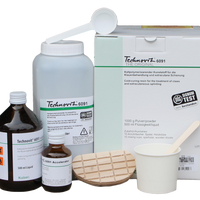 Technovit is een snel hardende kunststof welke ontstaat na het vermengen van poeder en vloeistof in bijgeleverde mengbekers. De massa goed doorroeren, na 3 minuten kunnen de blokjes aan de gezonde klauw worden bevestigd.