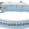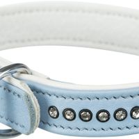 Active Comfort halsband met stras, leer, S–M: 27–33 cm/15 mm, lichtblauw