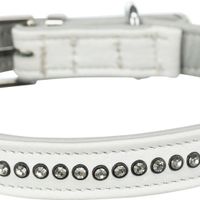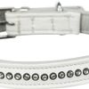 Active Comfort halsband met stras, leer, XS–S: 20–24 cm/12 mm, wit