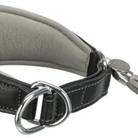 Trixie Active Comfort Halsband Voor Windhonden Leer Zwart/Grijs 24 - 31 x 5 cm De Trixie Active Comfort Halsband Voor Windhonden Leer Zwart/Grijs 24 - 31 x 5 cm is een comfortabele anti-trekhalsband speciaal ontworpen voor windhonden, extra breed voor een optimale drukverdeling. Elke windhond zal reizen in stijl, comfortabel en veilig met deze mooie halsband van Trixie. De halsband is speciaal voor windhonden en extra breed, zodat de druk optimaal verdeeld wordt. De halsband heeft een anti-touwfunctie. Doordat de halsband gemaakt is van dubbel gestikt en gevoerd leer, is hij uiterst comfortabel. Ook geschikt voor alle hondenrassen! - Leren halsband- Dubbel omwikkeld en comfortabel gevoerd- Extra breed voor optimale drukverdeling- Geschikt voor alle honden, maar speciaal voor greyhounds- Met anti-touwfunctieAfmetingen: 24 - 31 x 5 cmSpecificaties