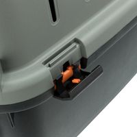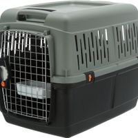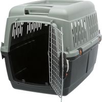 Trixie Transportbox Giona Be Eco Grijs / Antraciet 50 x 70 x 51 cmDe Trixie Transportbox Giona Be Eco Grijs / Antraciet 50 x 70 x 51 kg met IATA-set is een duurzame transportbox voor hond of kat, geschikt voor de meeste vliegreizen. Deze prachtige transportbox voor hond of kat is in vele opzichten superieur: allereerst is de Giona transportbox milieuvriendelijk, omdat hij gemaakt is van gerecycled plastic. Bovendien wordt deze doos geleverd met een IATA-set, en wordt hij door bijna alle luchtvaartmaatschappijen geaccepteerd voor vliegreizen (let op: informeer altijd bij uw luchtvaartmaatschappij!). De plastic doos heeft een metalen deurtje met afsluitbare kliksluitingen voor extra veiligheid, en heeft aan de andere kant een handvat waarmee je de doos kunt trekken als hij voorzien is van wieltjes. Wielen zijn apart verkrijgbaar (Trixie artikel 39899).