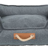 Trixie Be Nordic Mand Fohr Soft Grey 60 x 50 cmDe Trixie Be Nordic Mand Fohr Soft Grey 60 x 50 cm is een robuuste hondenmand in tweed-look, met stevig geïntegreerd kussen en anti-slip onderzijde. De perfecte, hoogwaardige mand voor uw trouwe metgezel! Deze robuuste mand in de bekende Be Nordic-stijl van Trixie is heerlijk zacht: de buitenkant is gemaakt van zacht polyester dat aanvoelt als tweed. De vulling bestaat uit schuimvlokken en polyester voor een stevig, comfortabel geheel. Het robuuste kussen is in de mand geïntegreerd om schuiven te voorkomen, en de bodem van de mand is antislip: zo kan het dier in en uit de mand stappen zonder weg te glijden. De mand is tevens voorzien van lederen applicaties en een handvat van touw om het robuuste uiterlijk nog verder te versterken. Een zeer hoogwaardige, robuuste mand voor de stoere hond en baas!